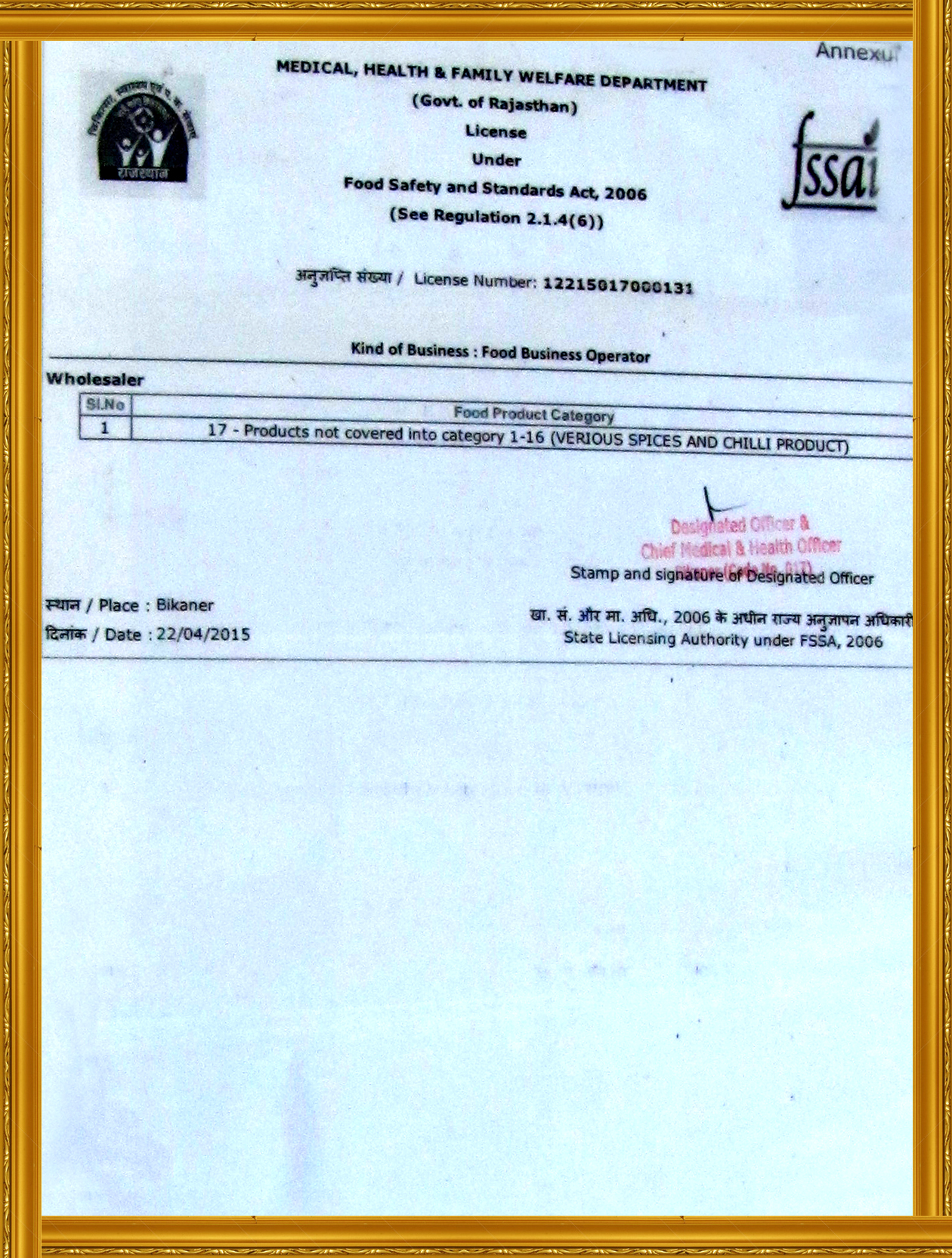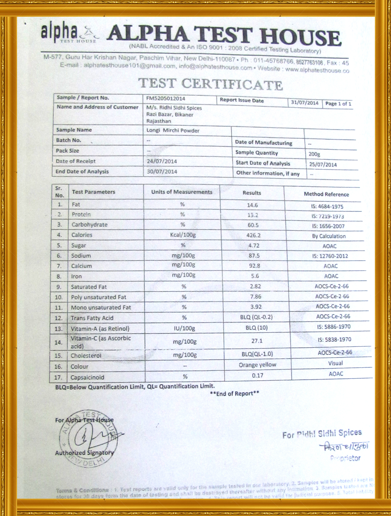 Our industry delivers the best quality spice and carry out chilli processing with efficient and empathetic processing with most modern machineries.Bikaner is the leading manufacturing unit of "LONGI MIRCH (CHILLI) POWDER".